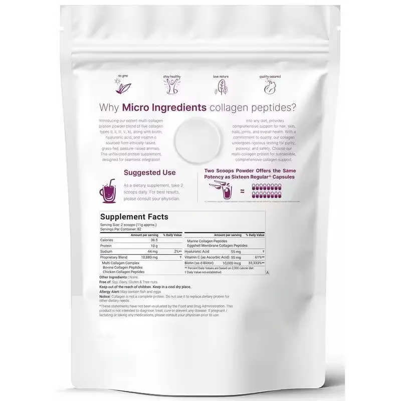 Découvrez notre poudre de collagène multi-peptides de qualité supérieure, formulée pour soutenir la santé optimale et le bien-être global. Riche en peptides de collagène, elle contribue à améliorer la santé de la peau, des articulations et des tissus conjonctifs. Sa formule experte favorise également la récupération et la vitalité, faisant de ce complément un allié précieux pour une routine de santé complète et équilibrée. Facile à intégrer dans votre alimentation quotidienne, elle aide à maintenir la souplesse et la force naturelles du corps.